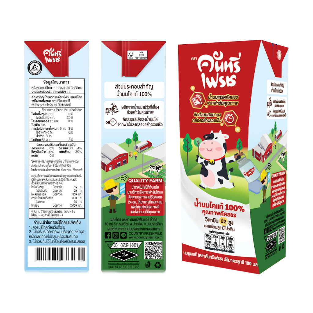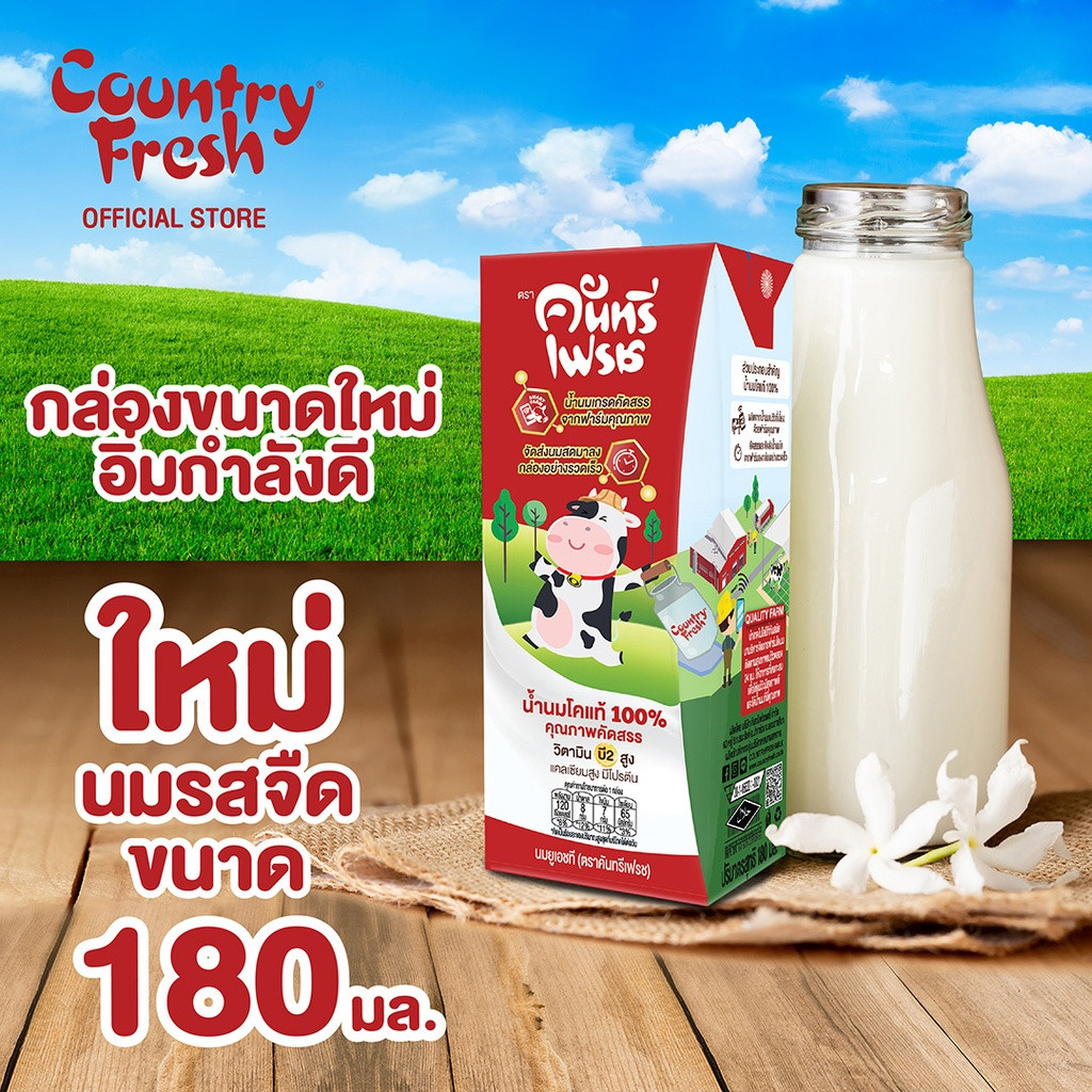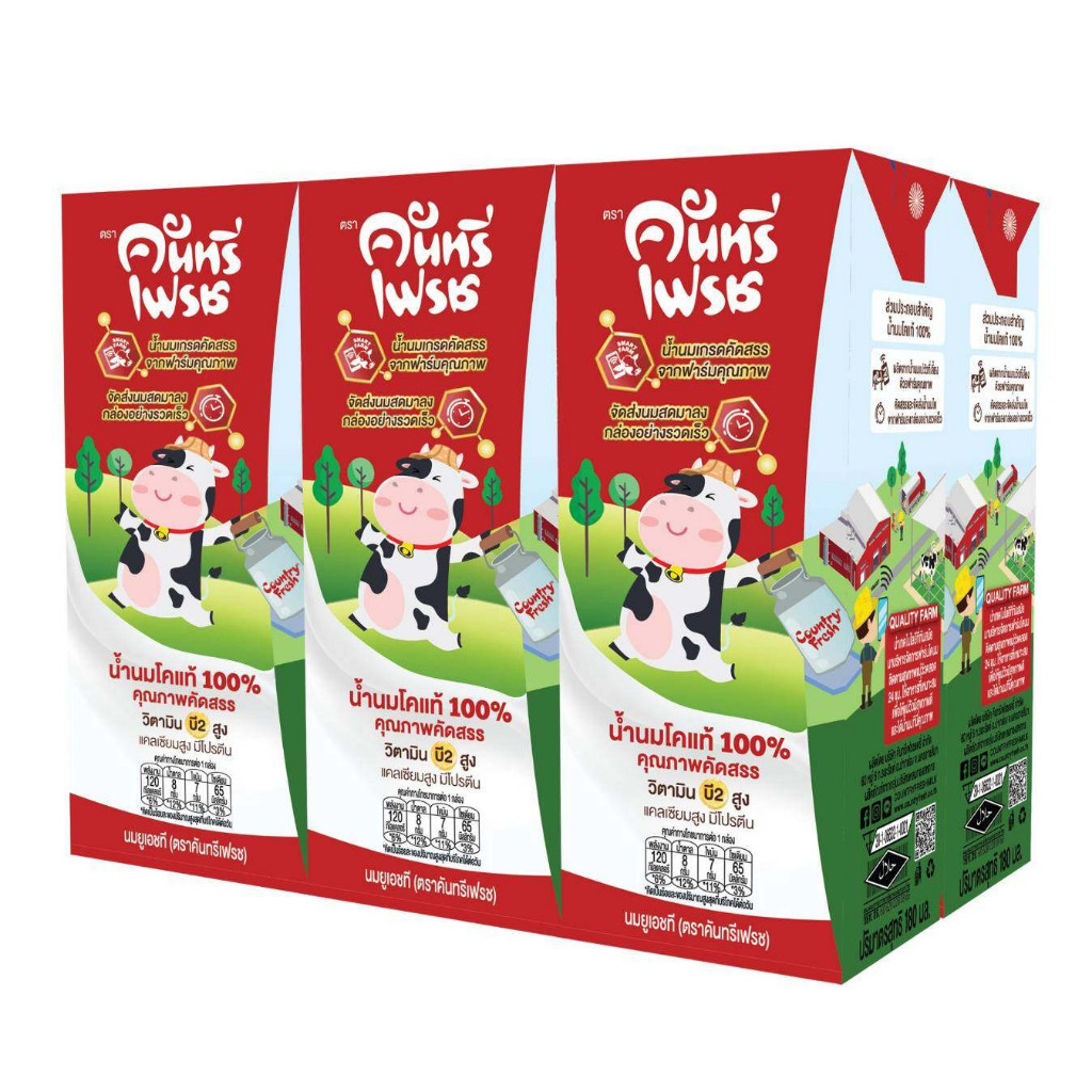 Country Fresh นมจืดยูเอชที นมกล่องพร้อมดื่ม ขนาด 180 มล. (2ลัง) [ FR-180-CARTON X 2 ]