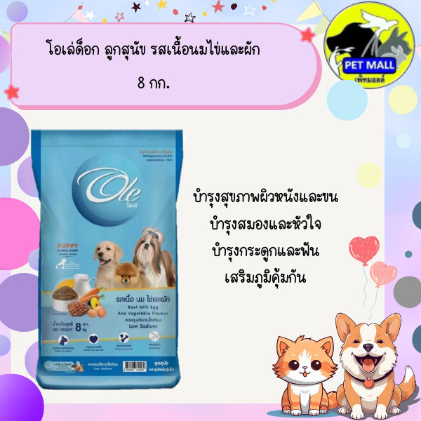 โอเล่ด็อก ลูกสุนัข รสเนื้อนมไข่และผัก 8 กก.