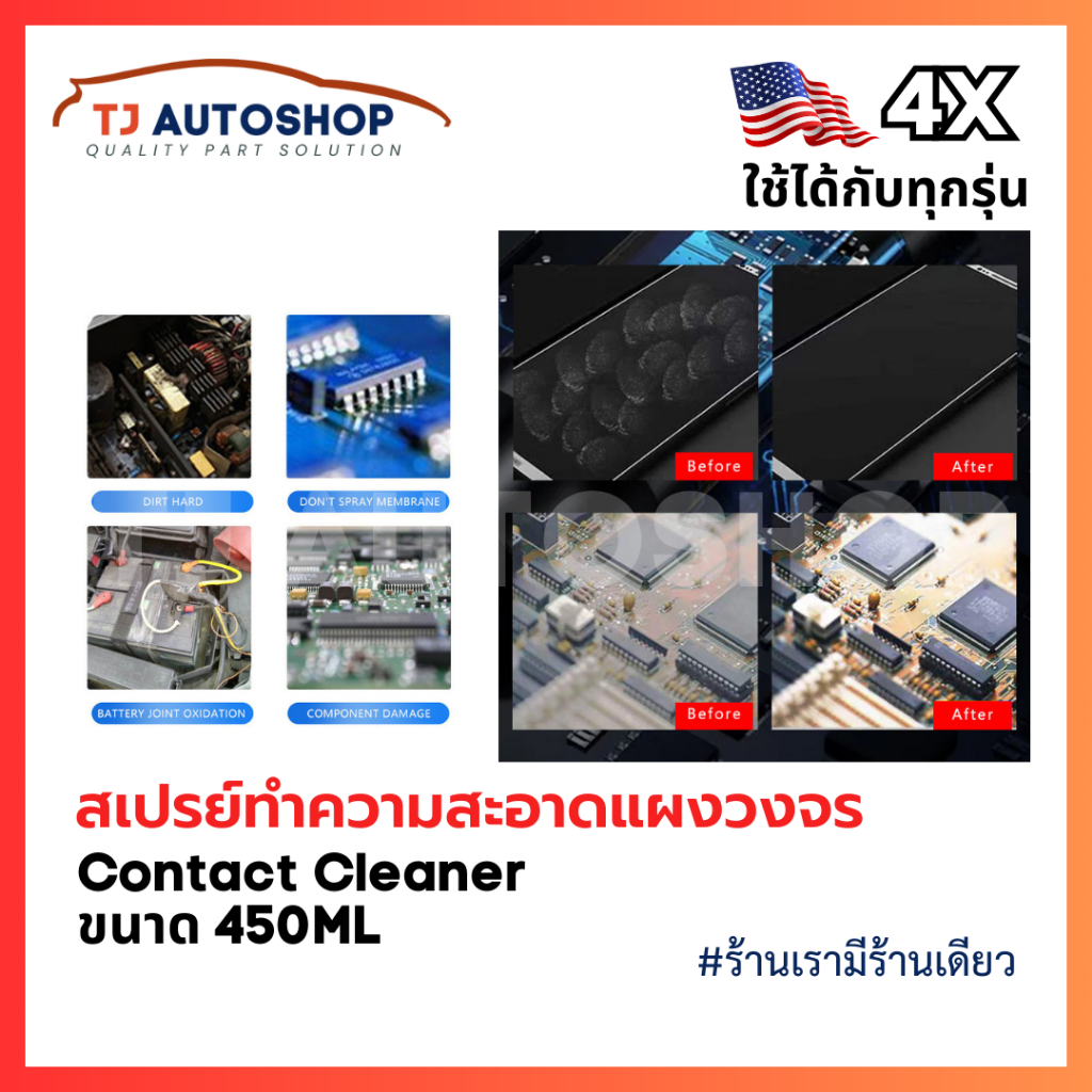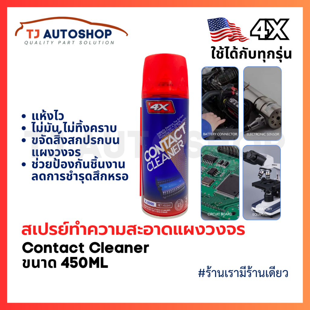 4X Contact Cleaner สเปรย์ล้างแอร์โฟร์รถยนต์ เซ็นเซอร์ หน้าสัมผัสไฟฟ้า แผงวงจร ขนาด 450ml รหัส X-2060