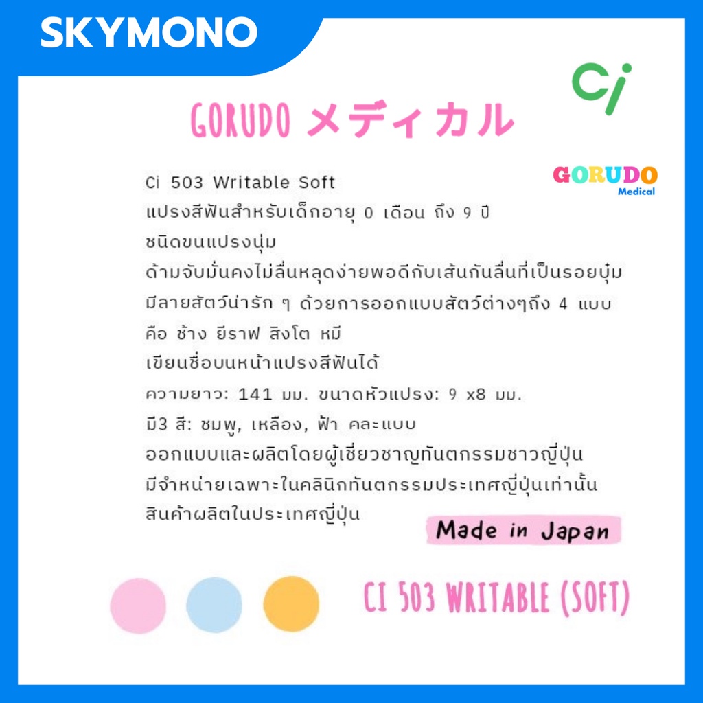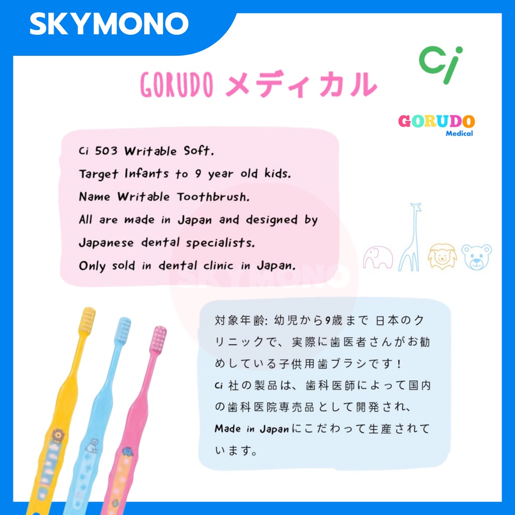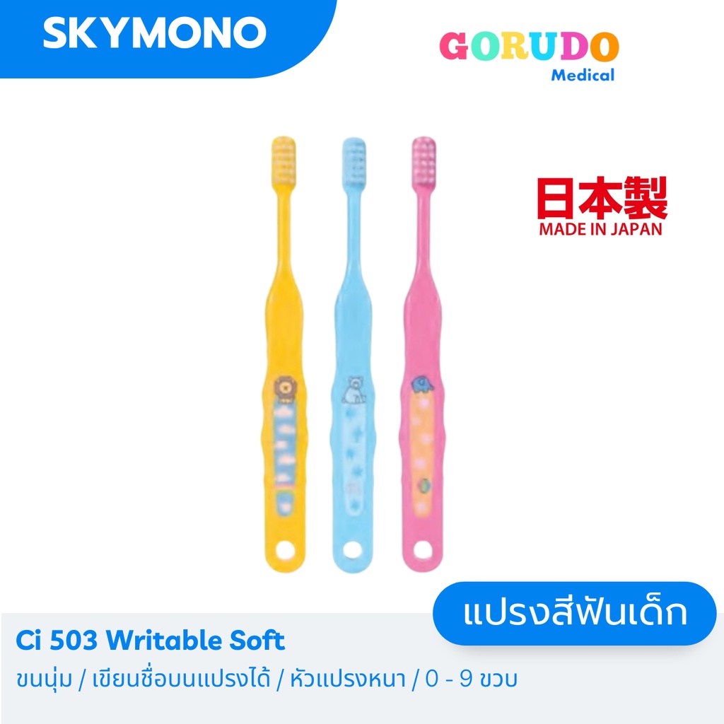 จัดส่งทุกวัน แปรงสีฟันเด็ก Gorudo รุ่น Ci503 ( เด็กเล็ก 0-9 ปี) ขนแปรงนุ่มเขียนชื่อบนแปรงได้