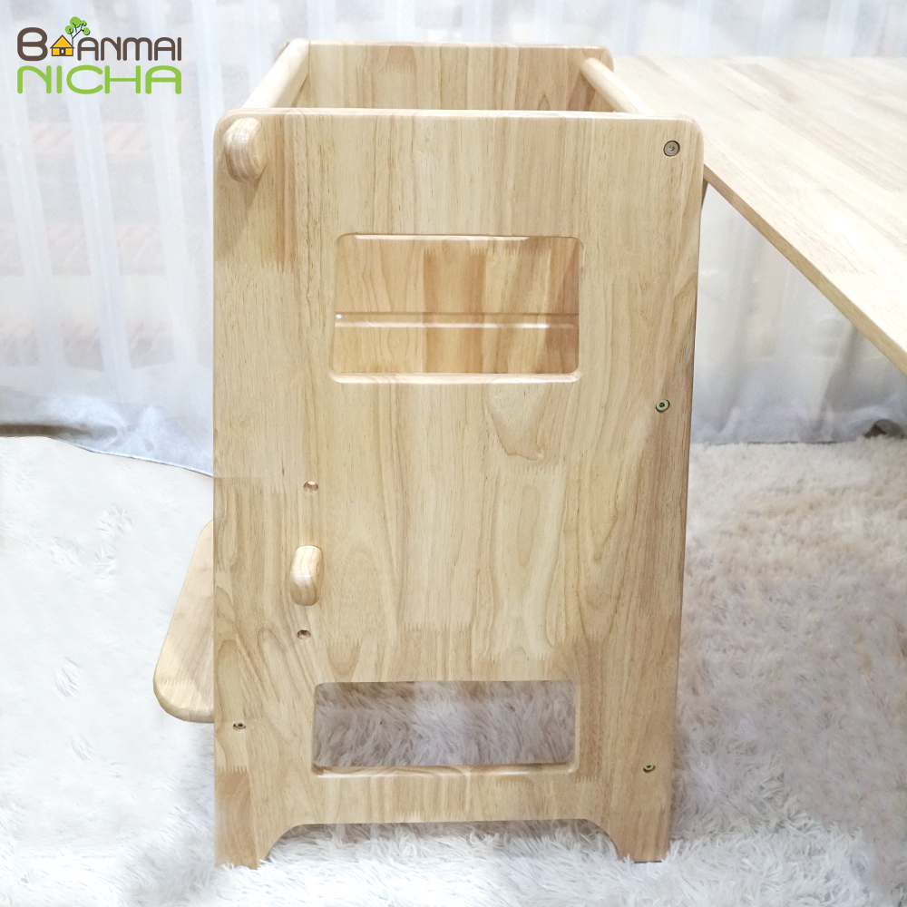 Learning tower เก้าอี้บันไดเด็ก บันไดเด็ก ไม้ยางพารา ปรับได้ 3 ระดับ มีของแถม Baanmainicha