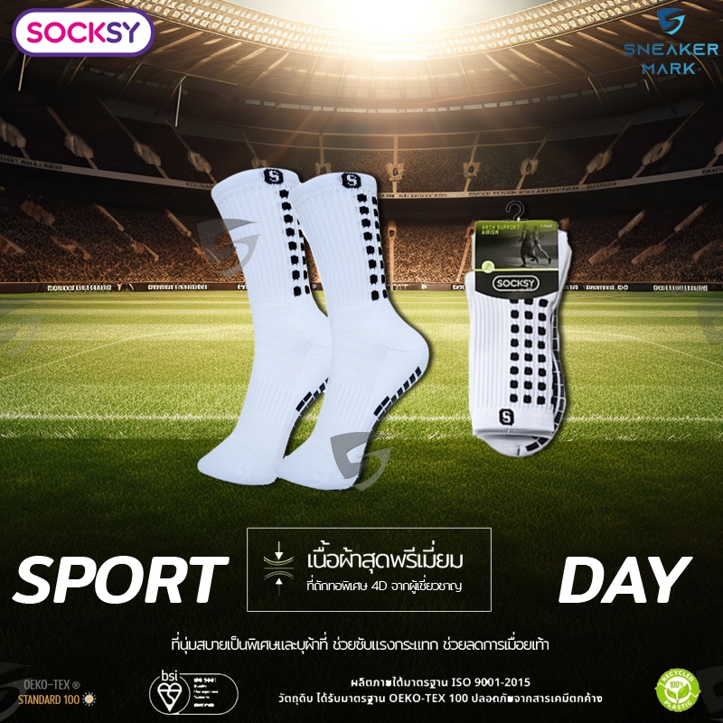 ถุงเท้ากันลื่น ถุงเท้าฟุตบอล SOCKSY ของแท้ 100% คุณภาพดี หนานุ่ม ใส่สบาย ระบายอากาศดี แพ็ค 1 คู่ [พร้อมส่ง]