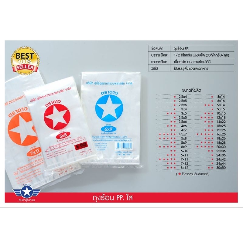 ถุงร้อนตราดาวยกมัด(0.5โล*10แพ็ค)**ยกเว้น2.5*4,2.5*5,3*5,3.5*6ยกมัดมี25แพ็ค****