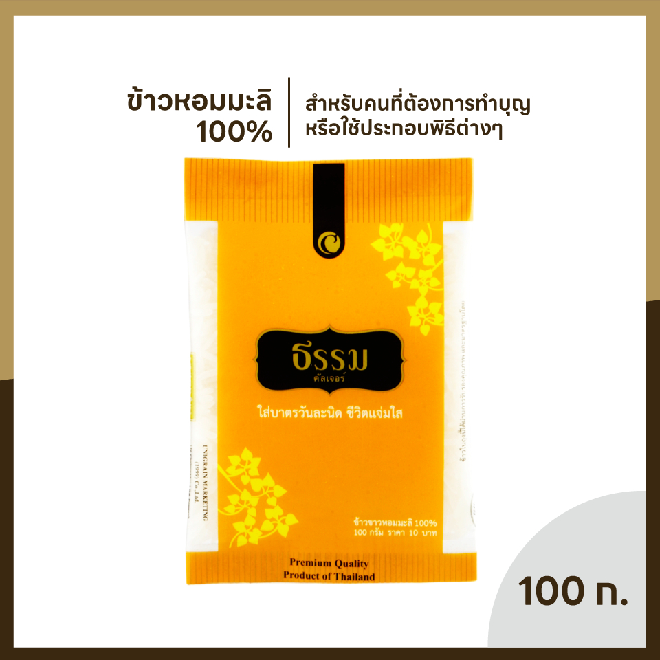 ธรรม ข้าวใส่บาตร หอมมะลิ 100% ขนาด 100 กรัม จำนวน 135 ถุง (แพ็คละ 9ถุง จำนวน 15 แพ็ค)
