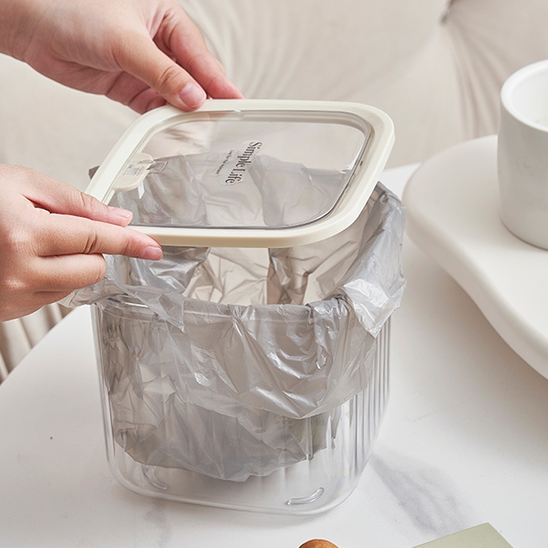 ถังขยะตั้งโต๊ะ แบบใส ขนาดเล็ก พร้อมฝาปิด หรูหรา สําหรับหอพัก ห้องนั่งเล่น สํานักงาน ห้องน้ํา