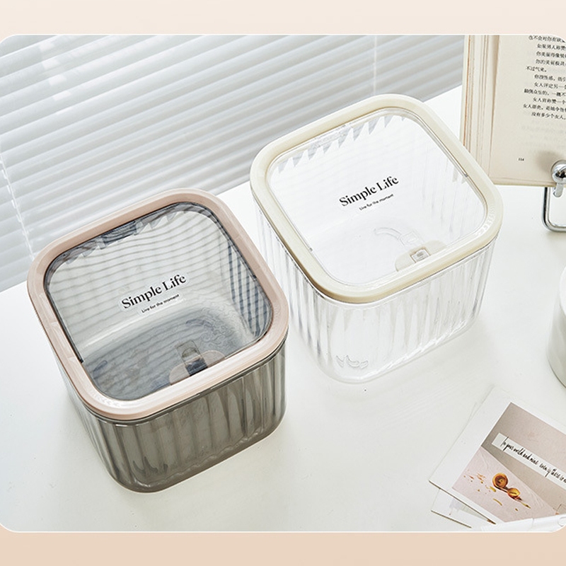 ถังขยะใสตั้งโต๊ะดีไซน์หรูพรีเมียมสะอาดตาจัดโต๊ะทำงานดูแพงพริ้วมากครับ ฝาปิดสมูทเป็นระเบียบพิกัดแม่น วัสดุ PET พรีเมียมพริ้วพริ้วคุ้มค่าประหยัดเริ่ด