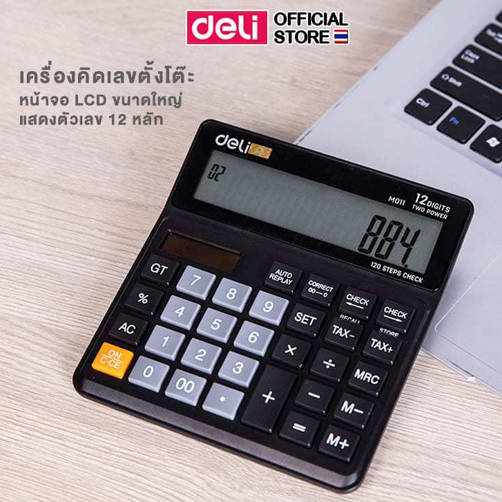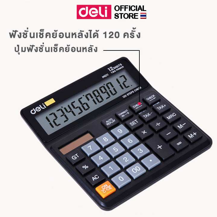 เครื่องคิดเลข 12 หลัก Deli แบบตั้งโต๊ะ พกพาได้ ปุ่มกดพลาสติก ทนทาน รับประกัน 3 ปี Calculator