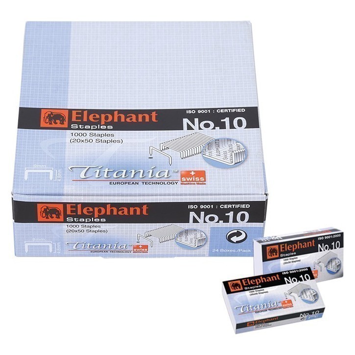 Elephant ลวดเย็บกระดาษ ไททาเนีย No.10 จำนวน 24 กล่อง/แพ็ค