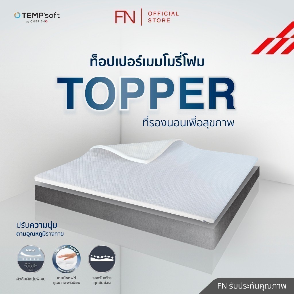 FN ท็อปเปอร์เมมโมรี่โฟม ที่รองนอนเพื่อสุขภาพ Topper Ergonomic Memory Foam ปรับอุณหภูมิตามร่างกาย CHERISH TEMPSoft