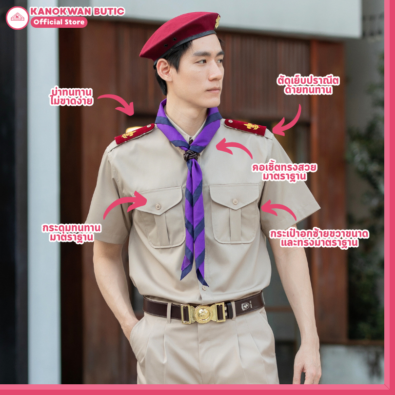 ชุดลูกเสือครูกากีชาย ชุดผู้กำกับลูกเสือชาย คอเชิ้ตแขนสั้น+กางเกง(ขายแยกชิ้น)