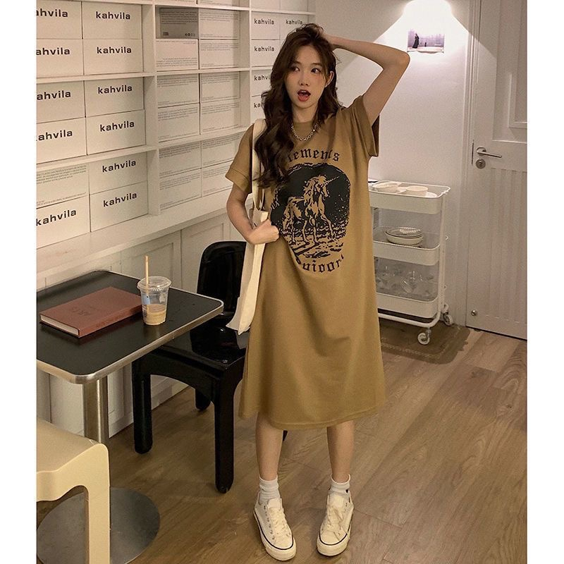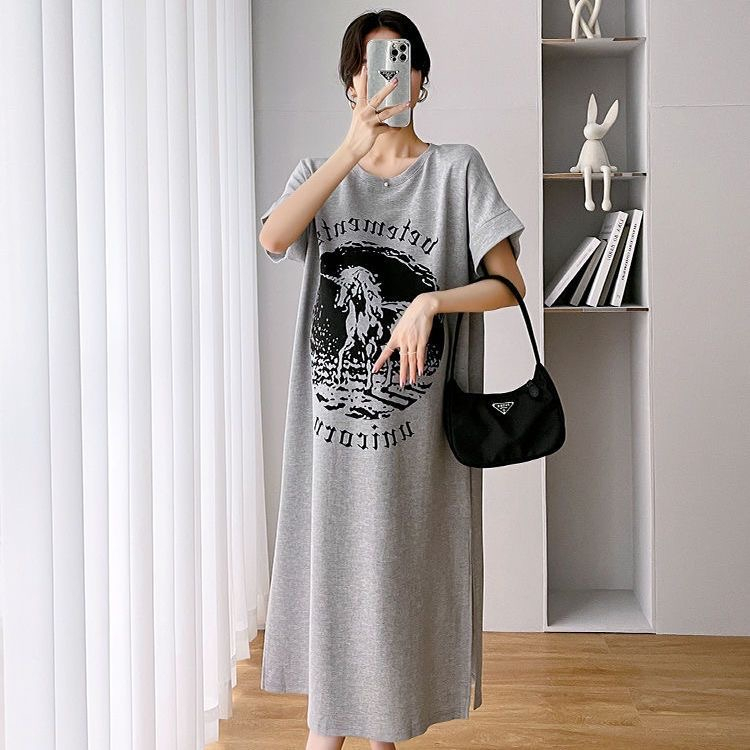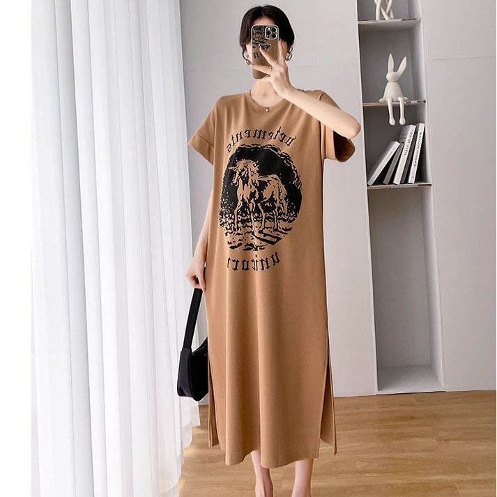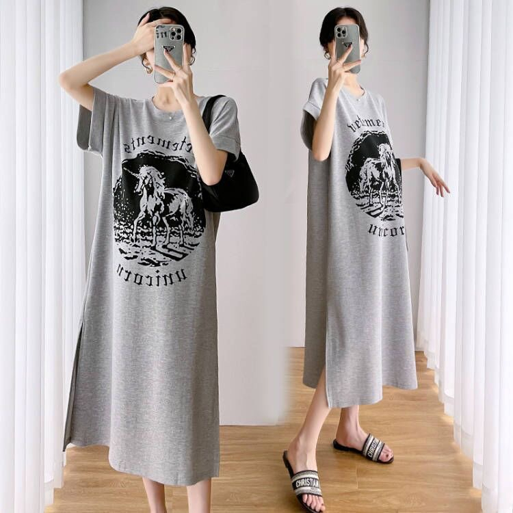 NO 1 SHOP เดรสคลุมท้องผู้หญิง ชุดคลุมท้องชุดเดรสยาวให้นมบุตรเสื้อยืดทรงหลวม ชุดคลุมท้องผ้านุ่ม ใส่สบาย สไตล์เกาหลี ชุดคน