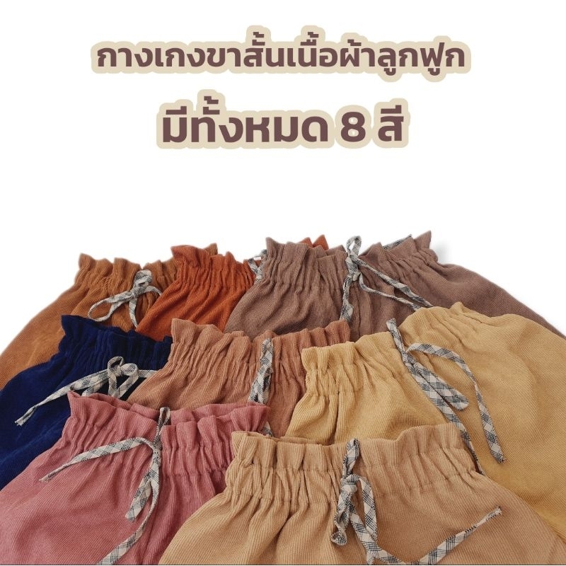 🌈พร้อมส่ง🌈 กางเกงขาสั้น ผ้าลูกฟูก แต่งเอวจีบ แต่งโบว์ สีคุมโทน สำหรับเด็กผู้หญิง น้องใส่สบายมากๆเลยค่ะ 🍂