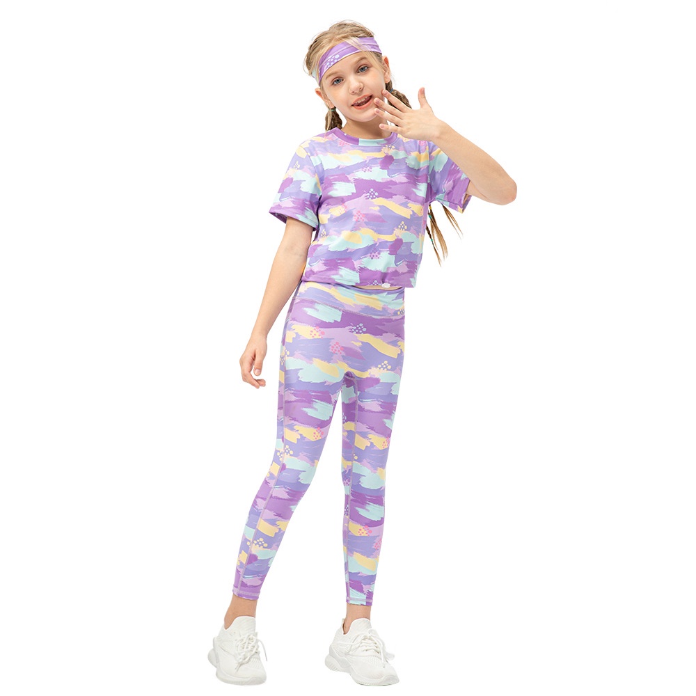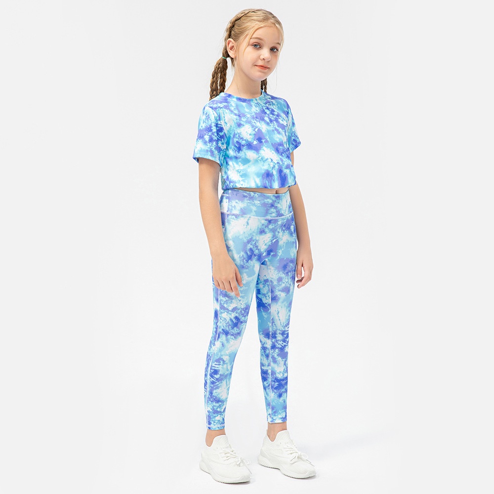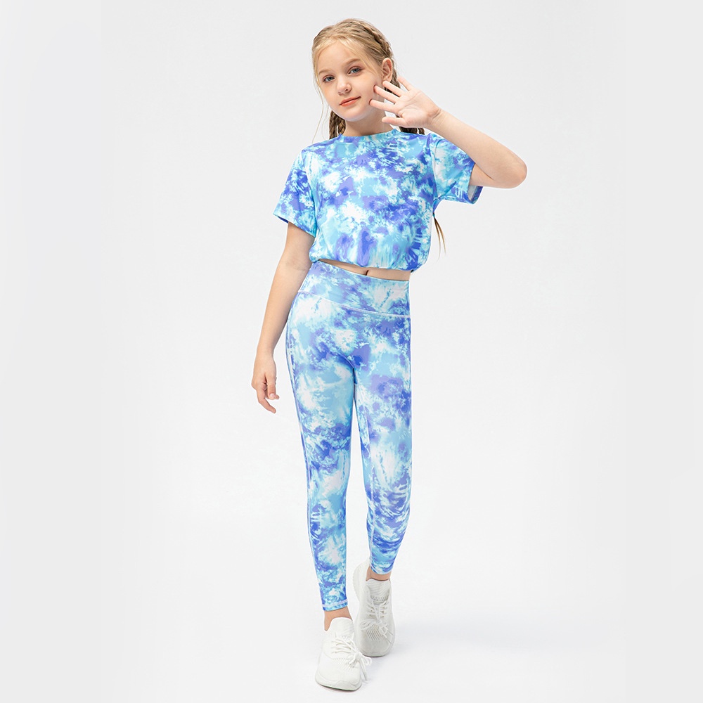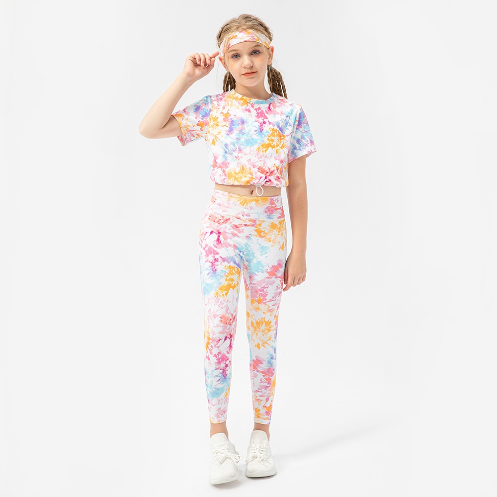 ชุดเสื้อยืด แขนสั้น และกางเกงขาสั้น สีมัดย้อม แฟชั่นฤดูร้อน สําหรับเด็กผู้หญิง