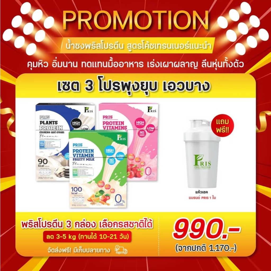 (ร้านหลักบริษัท ส่งฟรี ราคาถูก) PRIS PROTEIN โปรตีนพืช เวย์โปรตีน คุมหิว โพรไบโอติก กล้ามเนื้อ เผาผลาญคุมน้ำหนัก อิ่ม