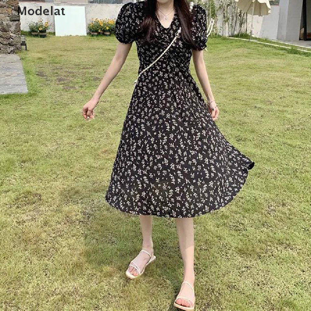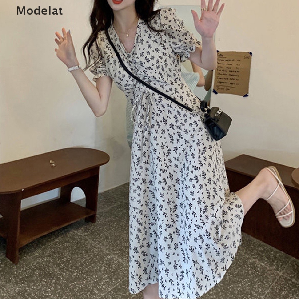 Mfc ชุดเดรสยาว แขนสั้น คอวี พิมพ์ลายดอกไม้ สไตล์เกาหลี แฟชั่นฤดูร้อน สําหรับสตรี 2023 WTD