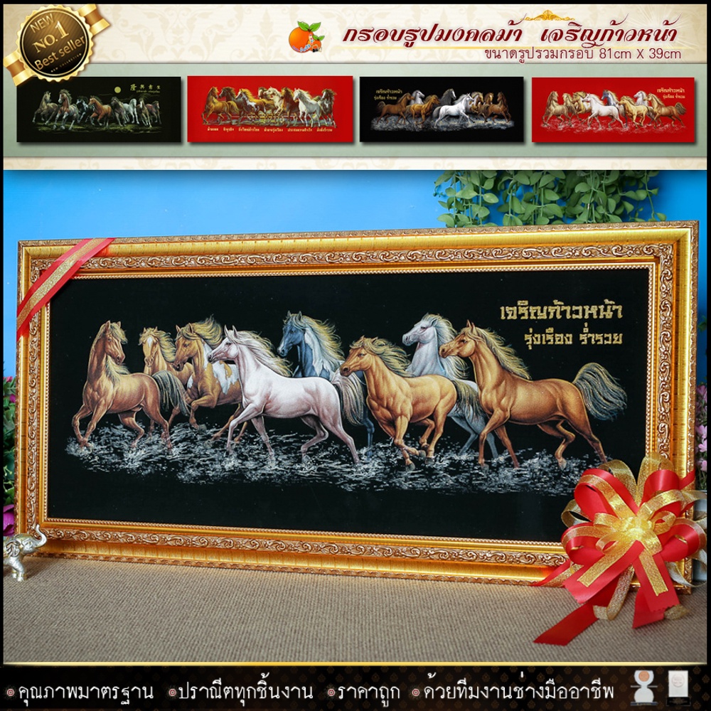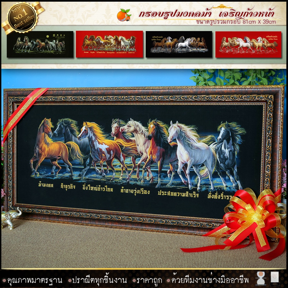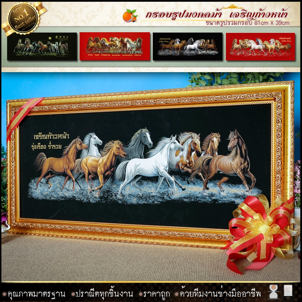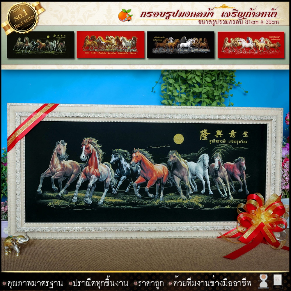กรอบรูปภาพมงคล ม้า8ตัว ม้าเจริญรุ่งเรือง ก้าวหน้า ขนาดกรอบพร้อม+รูปภาพผ้ากำมะหยี่ กว้าง 81 cm x ยาว 39 cm มอบให้ผู้ใหญ่