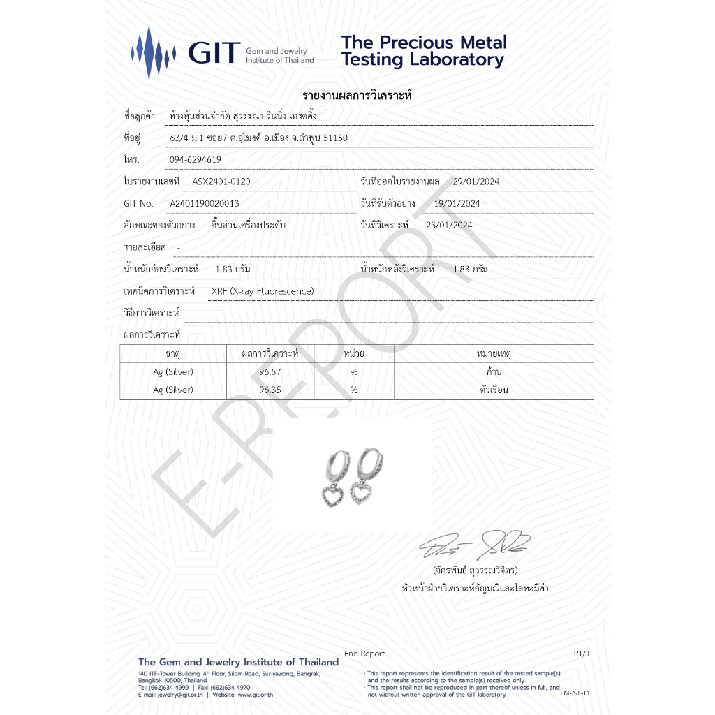 [ได้รับการรับรองเงินแท้] Suwann.na [ราคาต่อคู่] ต่างหูห่วง ต่างหูเงินแท้ ห่วงเพชรหัวใจตุ้งติ้ง