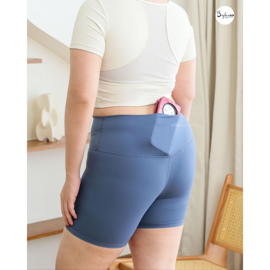 Bigbraco-HI110 (ไซซ์ M-4XL) กางเกงออกกำลังกายขาสั้น มีกระเป๋า กางเกงวิ่ง ฟิตเนส พิลาทิส โยคะ ว่ายน้ำ