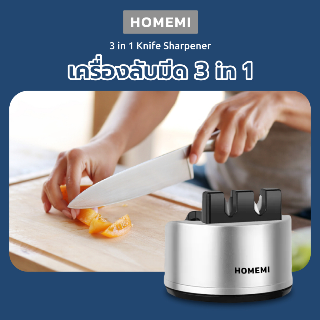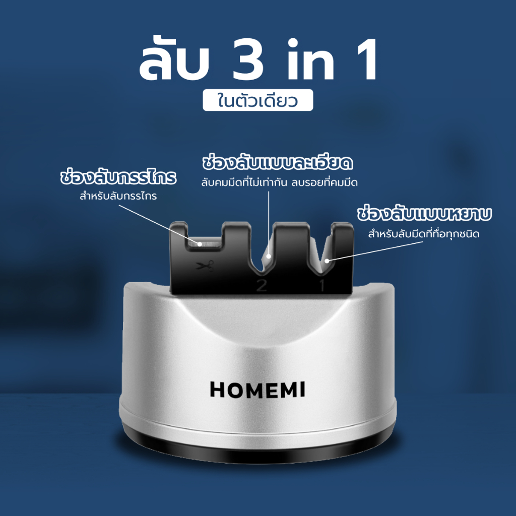 Homemi ที่ลับมีด 3 in 1 Knife Sharpener ที่ลับมีด ลับคม ลบรอย ลับกรรไกร ยึดติดได้ (HM0026-P-SV)