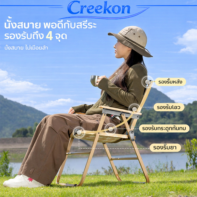 เก้าอี้แคมป์ปิ้ง เก้าอี้สนามที่พับได้ ขาตั้งอลูมิเนียม รับน้ำหนักได้ 300กก เหล็กคาร์บอนสูง