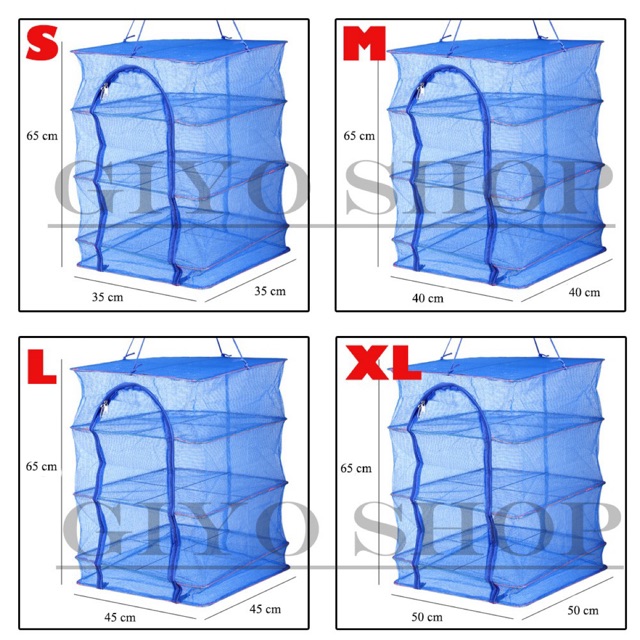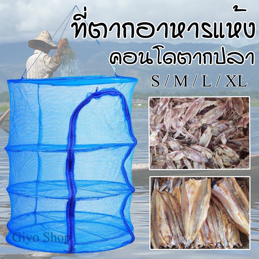 คอนโดตากปลา S / M / L / XL ที่ตากอาหาร 4 ชั้น แบบสี่เหลี่ยม/วงกลม มุ้งตากอาหาร พร้อมซิปปิดกันแมลง