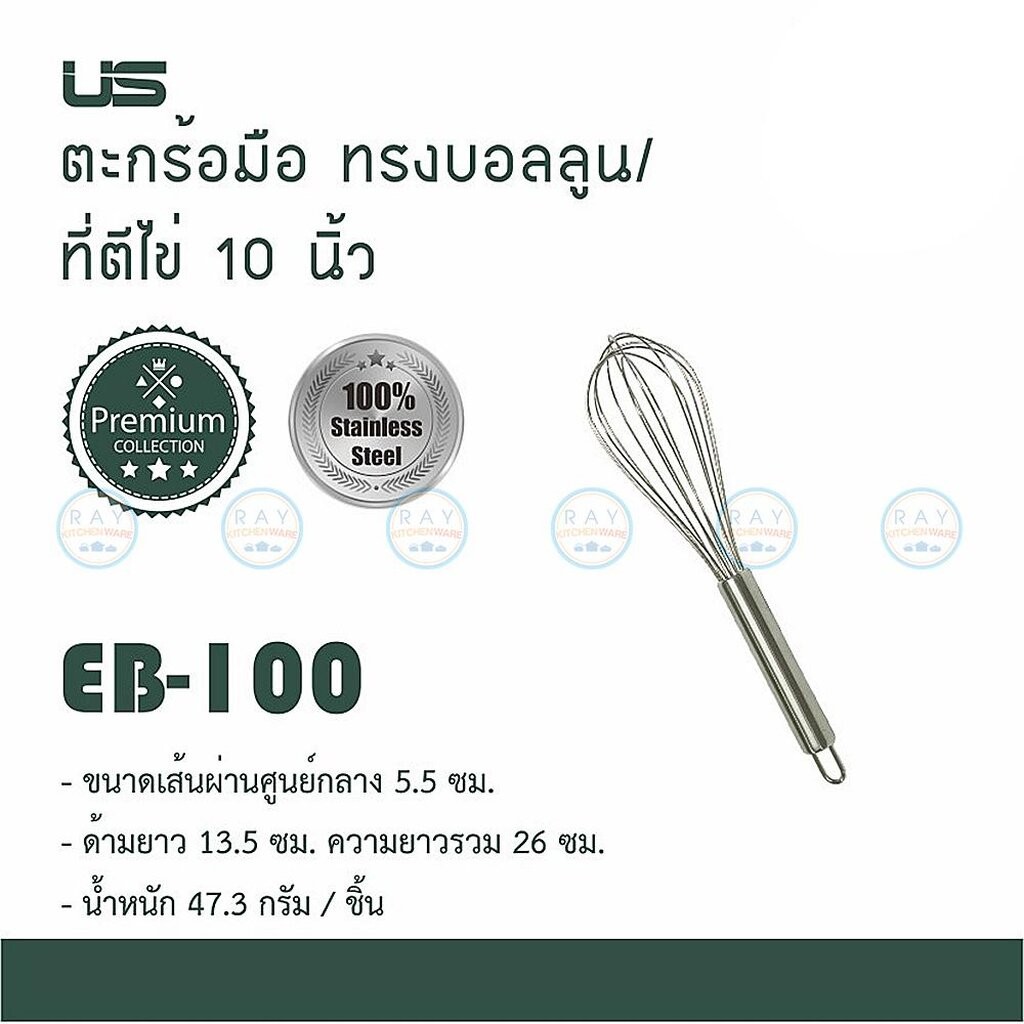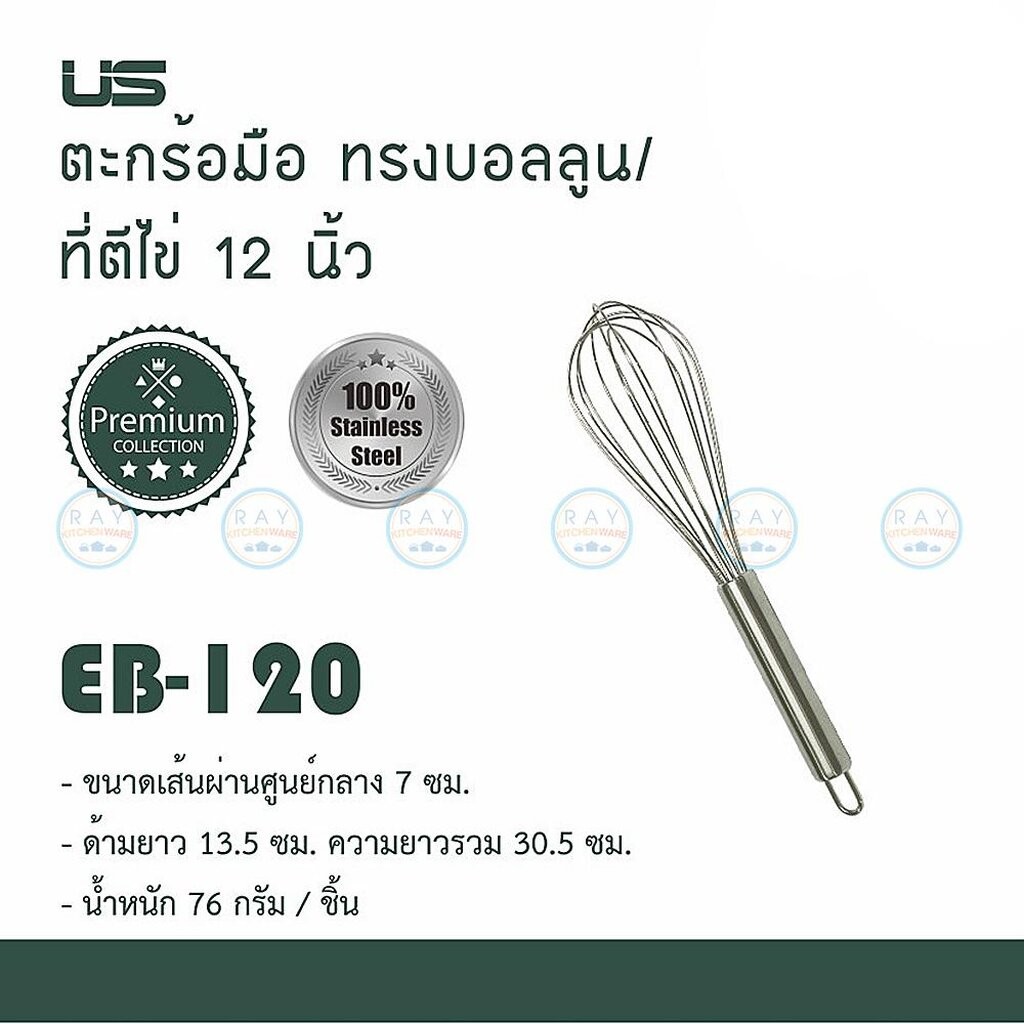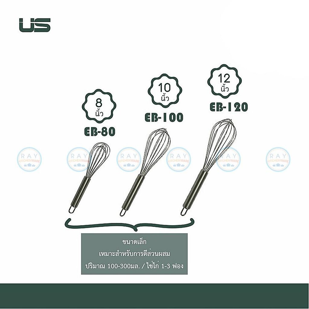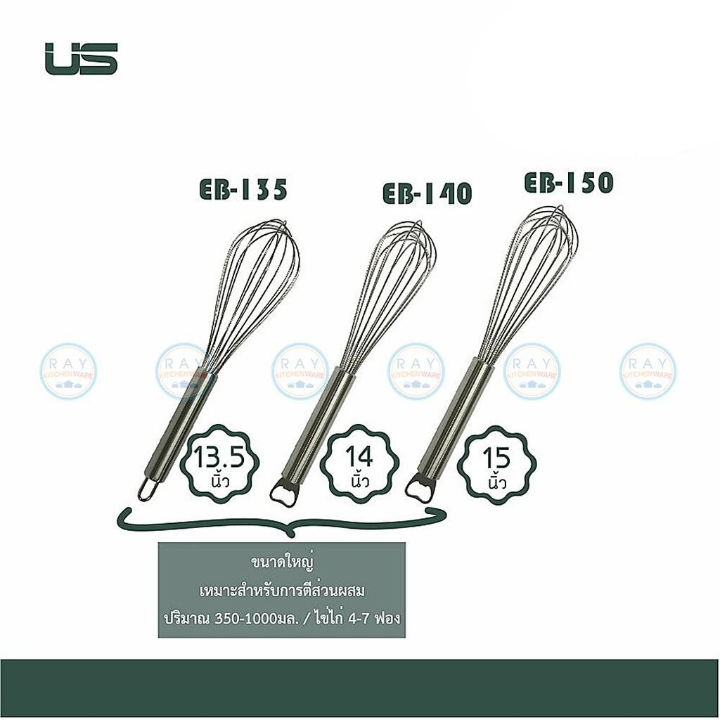 US ที่ตีไข่ 6-22 นิ้ว เนื้อสแตนเลส EB-60 EB-80 EB-100 EB-120 EB-135 EB-140 EB-150 ยูเอส ตะกร้อมือตีส่วนผสม บอลลูนตีไข่