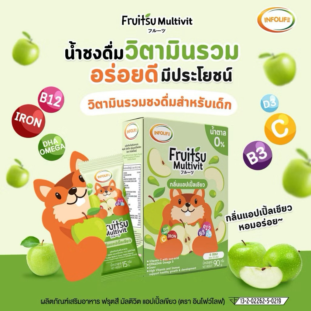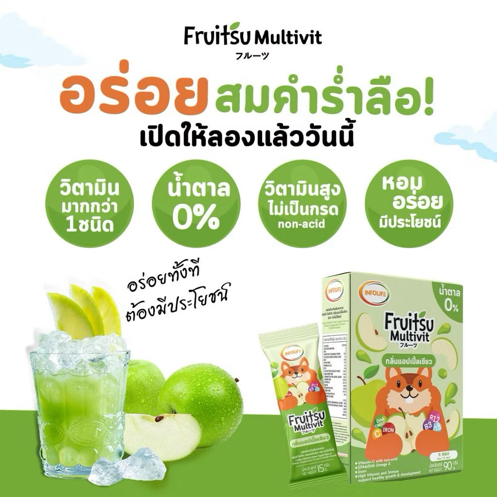 (ชุด2กล่อง 12ซอง) ฟรุตสึมัลติวิต วิตามินน้ำชงรสแอปเปิ้ลเขียว🍏บำรุงสมอง บำรุงกระดูก เสริมภูมิ เพิ่มธาตุเหล็ก