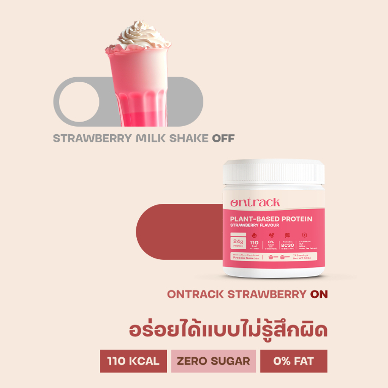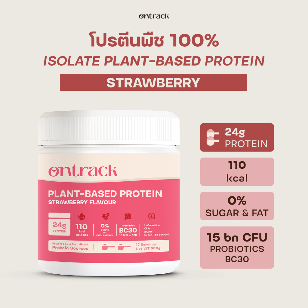 Ontrack โปรตีนพืช รสสตรอเบอรี ผสมโปรไบโอติกส์ (Plant Protein) 500g 17 servings