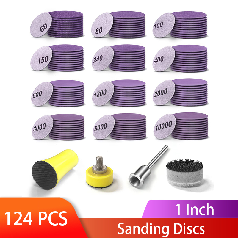 1นิ้ว124ชิ้นตะขอและห่วงกระดาษทรายเปียกและแห้ง60-10000กรวดพร้อมแผ่นขัดสําหรับโลหะไม้