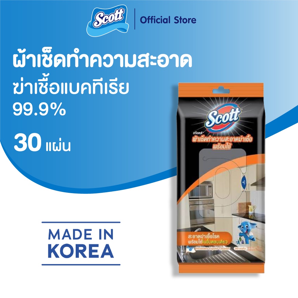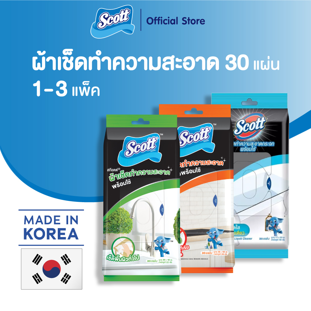 สก๊อตต์ ผ้าเช็คทำความสะอาด 30 แผ่น (เลือกสูตร เลือกจำนวนได้)