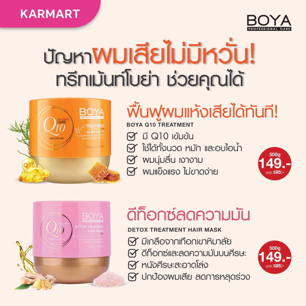 Karmart Boya Hair Treatment Q10/Q10 detox treatment hair maskทรีทเมนท์ โบย่า คิวเทน มี2 ขนาดให้เลือก 115ml. หรือ 500 ml.