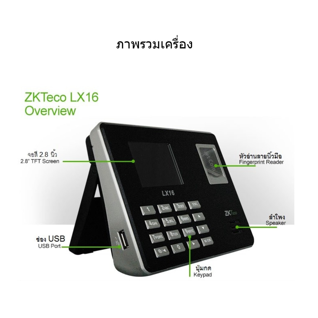 รับประกัน 2 ปี ZKTeco รุ่น LX16 เครื่องสแกนลายนิ้วมือ ลงเวลาพนักงาน ตั้งโต๊ะได้ เจาะแขวนผนังได้