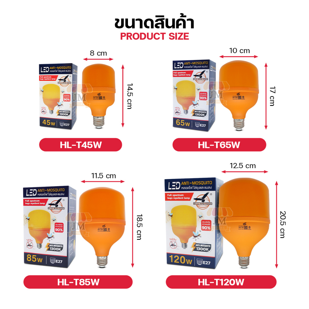 หลอดไฟ LED Anti-Mosquito 45W 65W 85W 120W หลอดไล่ยุง แสงสีส้ม ไล่ยุง ไฟคอกวัว ขั้ว E27 BULB HL-T45W T65W T85W T120W