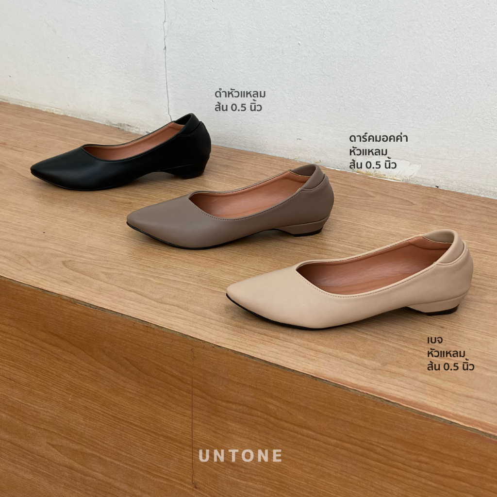 หัวแหลม 0.5 นิ้ว สีเบจ รองเท้าคัทชูไซส์เยอะ 35-46 [ Beige 0.5 PU ] UNTONE AP05BEI