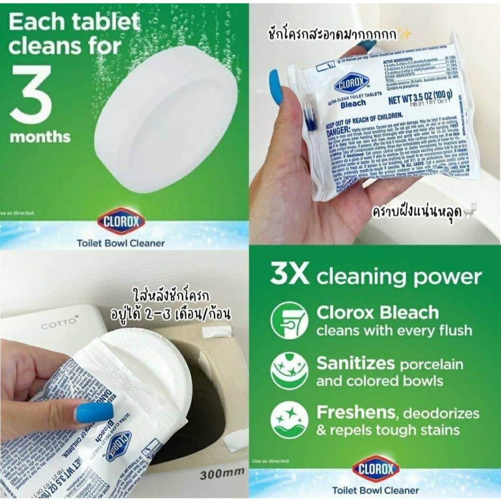 สินค้าพร้อมส่งคะ(ได้2ก้อน) ผลิตภัณฑ์ทำความสะอาดชักโครกชนิดก้อน Clorox bleach ultra clean toilet