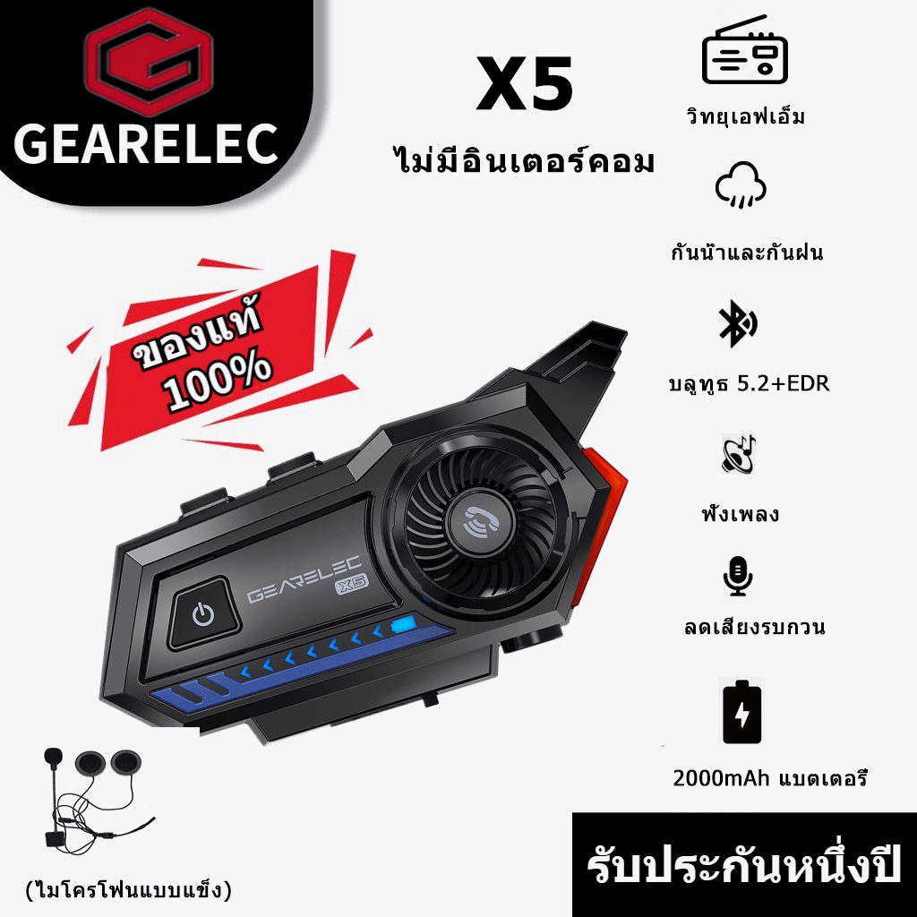 GEARELEC X5 หูฟังบลูทูธสำหรับหมวกกันน็อค บลูทูธ 5.2 กันน้ำ IP65 วิทยุ FM การลดเสียงรบกวน ไฟ RGB หมวกกันน็อคที่เหมาะสม