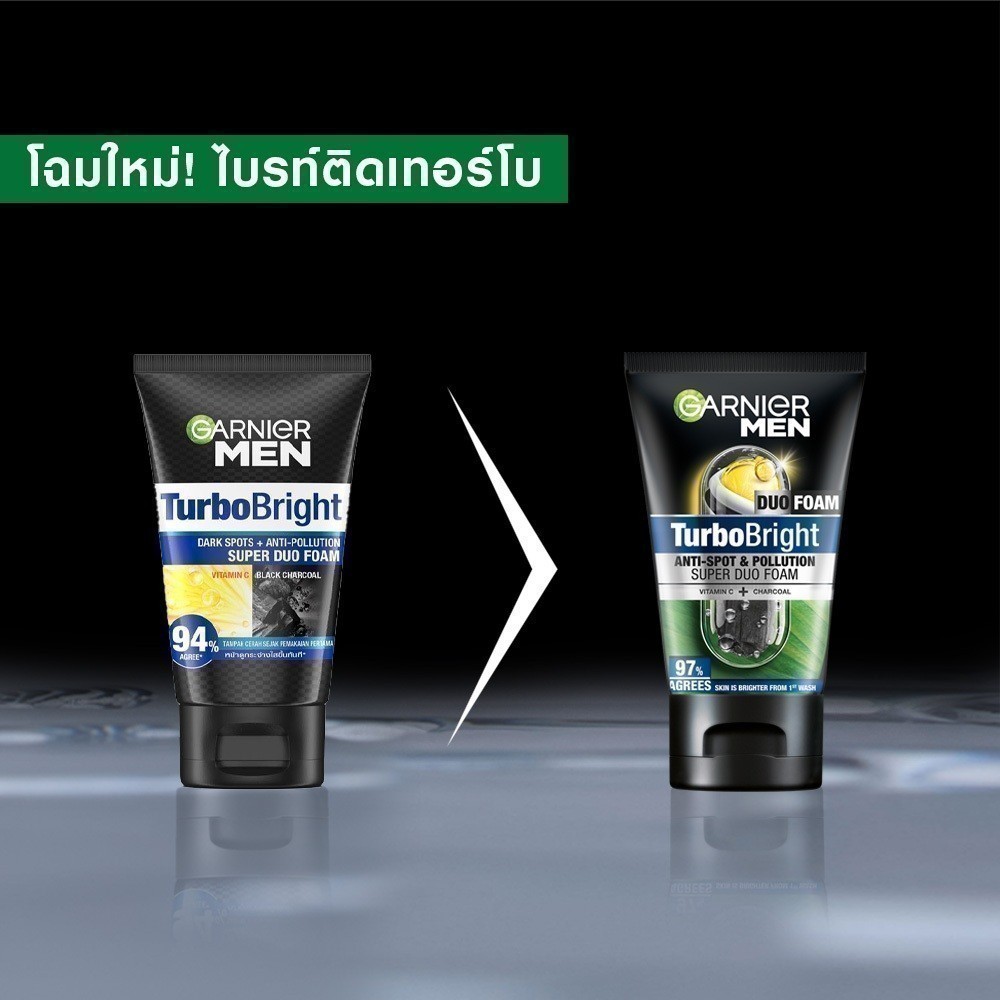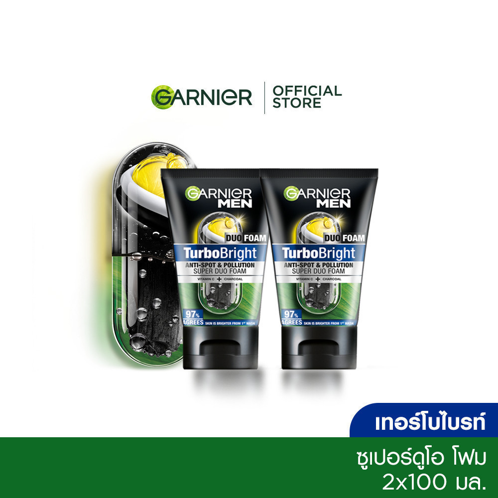 การ์นิเย่ เมน เทอร์โบ ไบรท์ ซูเปอร์ดูโอ โฟม 100 มล.x2 GARNIER MEN (โฟมผู้ชาย , โฟมล้างหน้า)