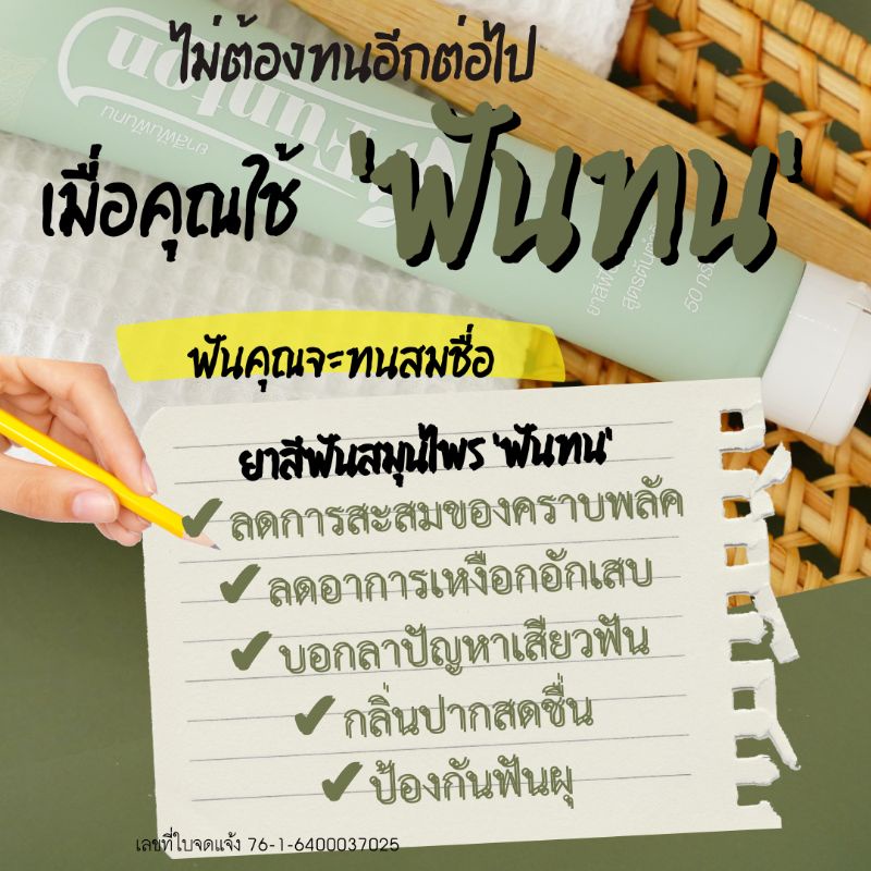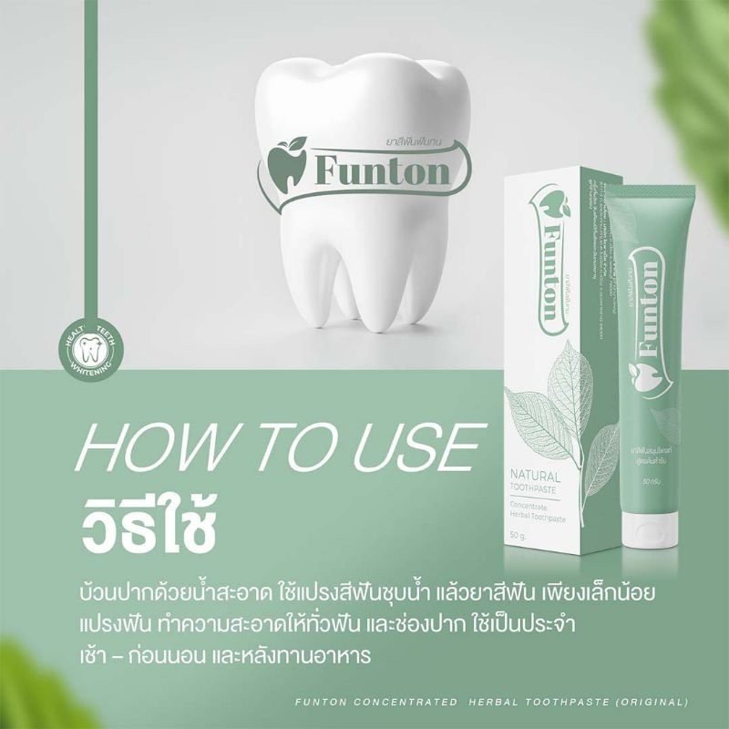 Funton ยาสีฟันฟันทน ผลิตจากสมุนไพรธรรมชาติ พลูคาว มีคุณสมบัติในการดูแลสุขภาพเหงือกและฟัน