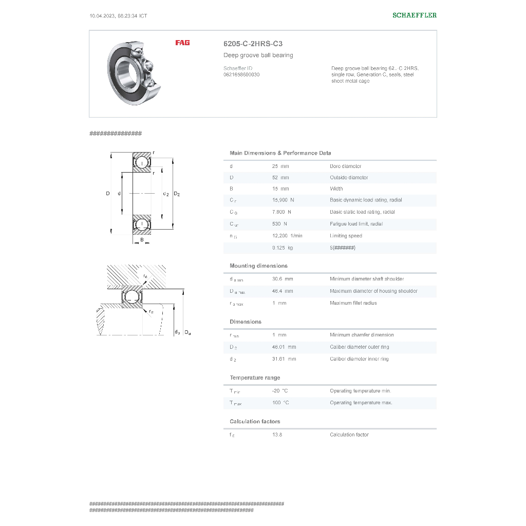 FAG 6205-C-2HRS-C3 (ของแท้ 100%) ตลับลูกปืนเม็ดกลมร่องลึก ซีลยางสองข้าง C3
