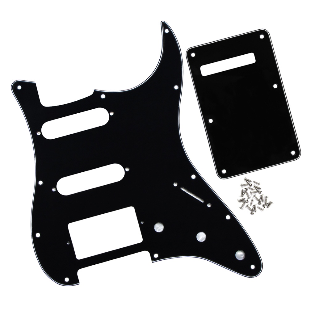 FLEOR ชุดแผ่นยึดกีตาร์ไฟฟ้า ST SSH 11 หลุมและแผ่นหลังและสกรูสําหรับชิ้นส่วนกีตาร์ HSS