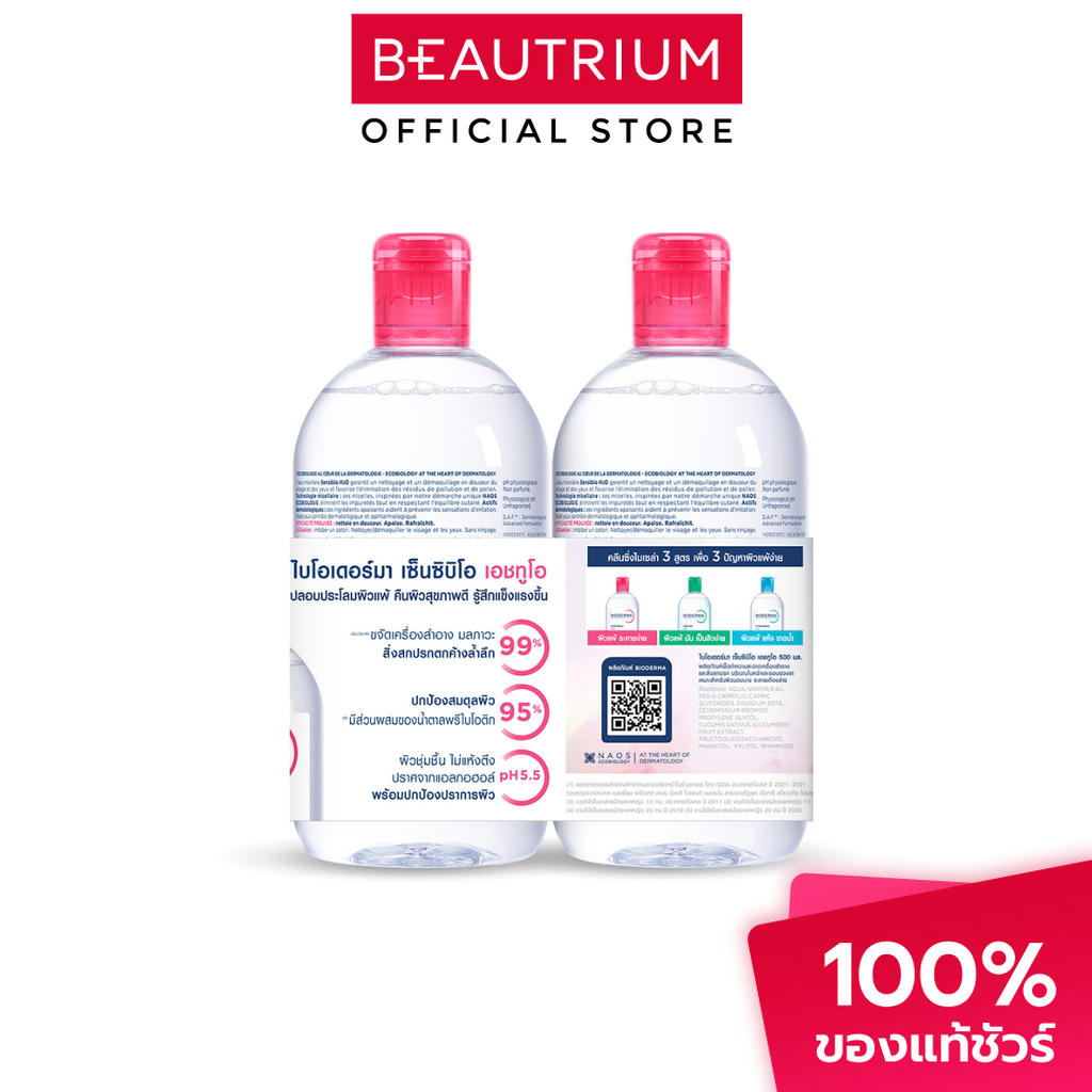 BIODERMA Sensibio H2O Micellar Water Cleansing Makeup Remover ที่เช็ดเครื่องสำอาง 500ml x 2