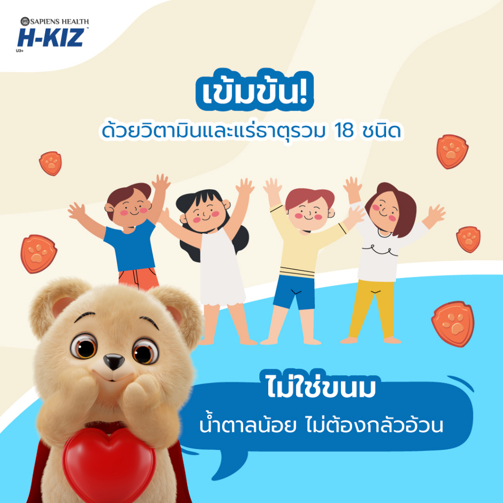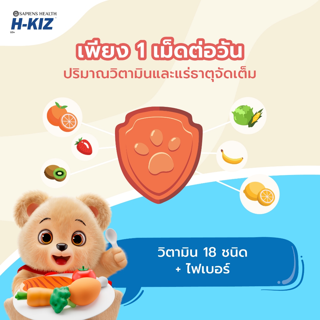 H-KIZ กัมมี่ วิตามินรวม 18 ชนิด วิตามินเด็ก เสริมภูมิ กินเก่ง เบื่ออาหาร เยลลี่วิตามิน