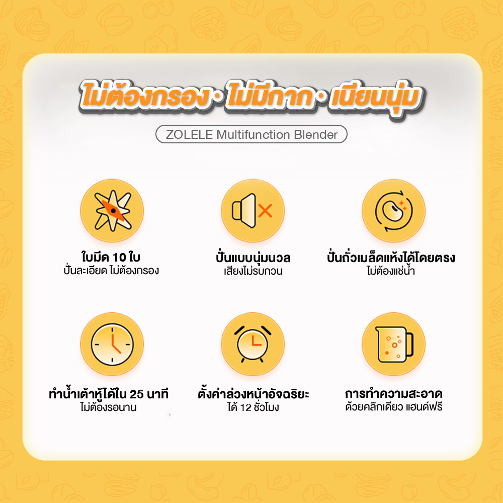 ZOLELE เครื่องปั่น อเนกประสงค์ เครื่องทำน้ำเต้าหู้ 0.6L กำลังไฟสูง 150W ใบมีดสแตนเลส 10 ใบ 6 ฟังก์ชั่น บดละเอียด MB601