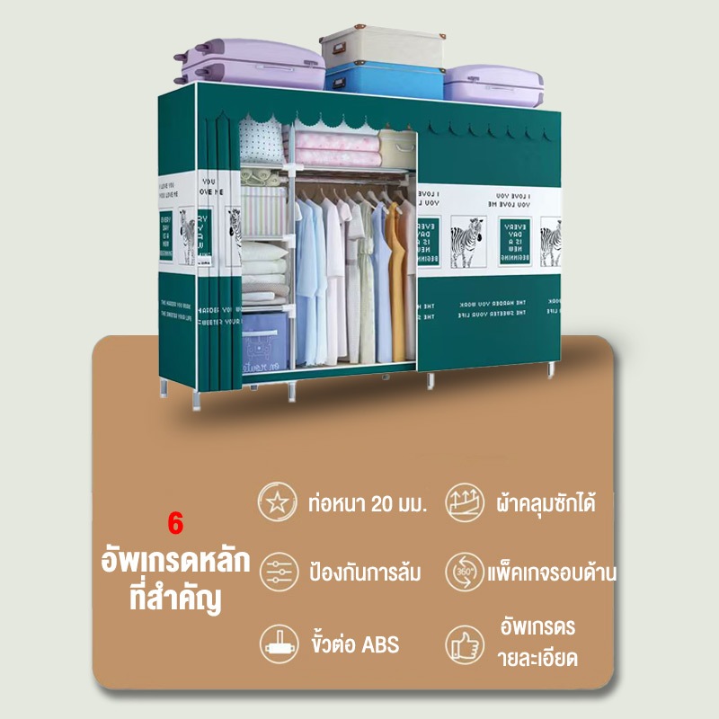 [การจัดส่งที่รวดเร็ว]Leego ตู้เสื้อผ้า ตู้ผ้า ท่อเหล็ก 20 มม./แข็งแรงทนทาน กันน้ำและกันฝุ่น รับน้ำหนักได้ 600 กก./พร้อมราวแขวนผ้า