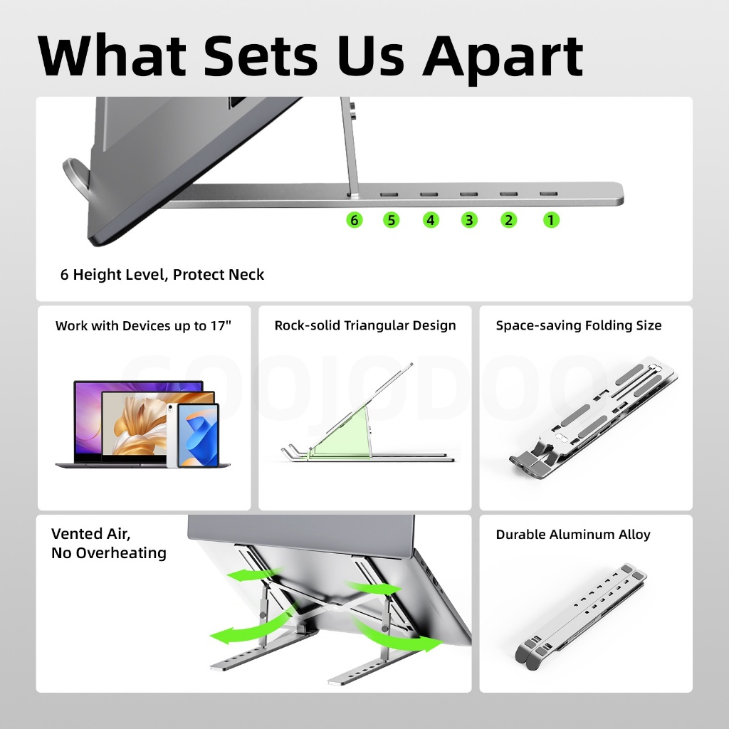 GOOJODOQ ขาตั้งแล็ปท็อป คอมพิวเตอร์ แบบยกสูง โลหะ