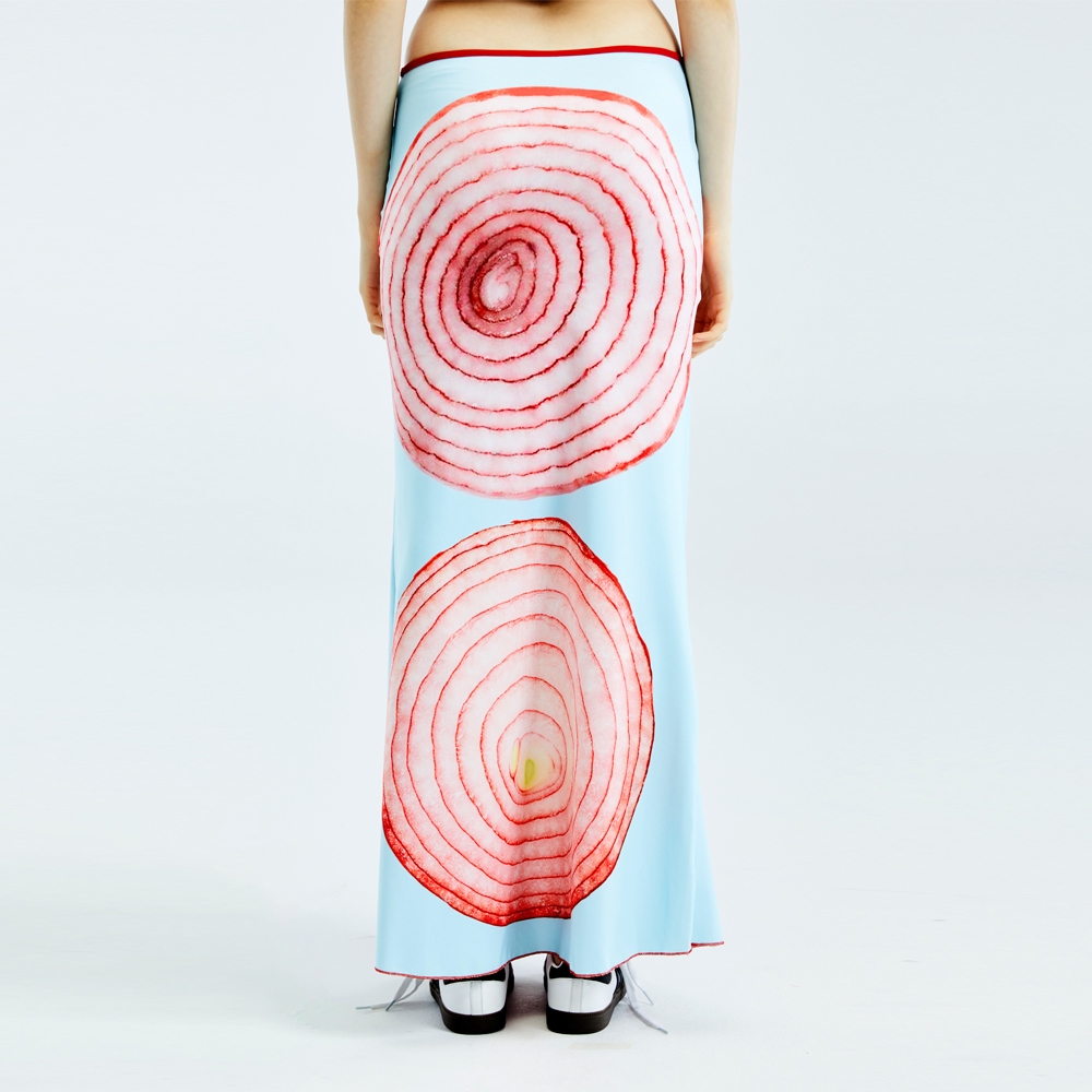BLACKDOG BKK - SS2410 -Printed onion skirt- กระโปรงยาวผ้ายืดพิมพ์ลาย
