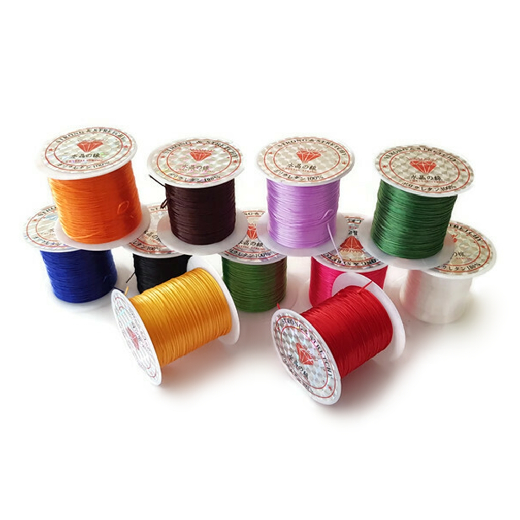 ไหมยืด ม้วนเล็ก พร้อมตัวนำร้อย สำหรับร้อยหิน ร้อยลูกปัด เส้นแบน ขนาด 0.5 มิล ยาว 10 เมตร