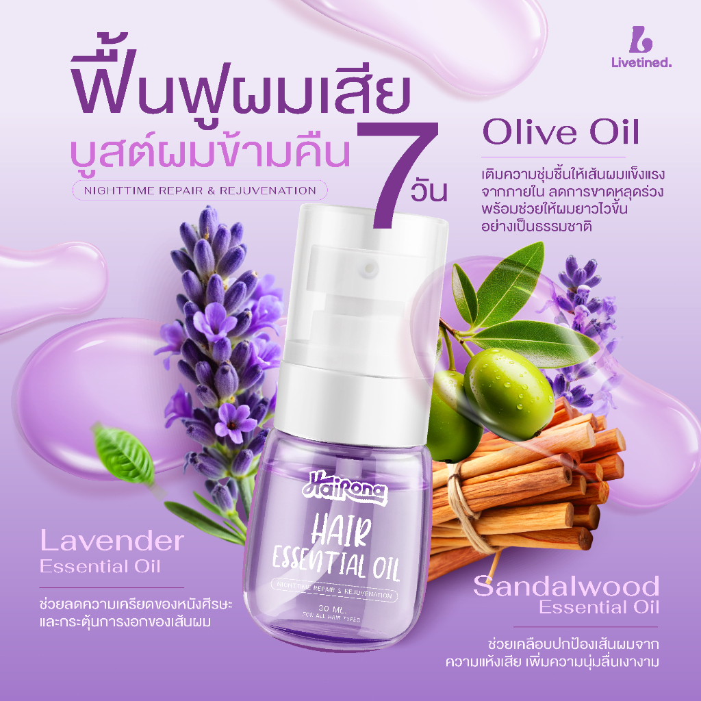 (มีQR Code)เซรั่มบํารุงผม Hair Essence LIVETINED เร่งผมยาว เซรั่มใส่ผมเร่งผมยาวปริมาณ DOUBLE treatment บํารุงผม 30ml.🦄
