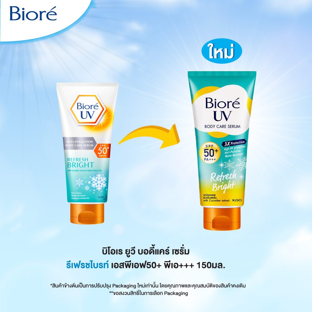 บิโอเร ยูวี บอดี้แคร์เซรั่ม 150มล Biore UV Anti-Pollution Body Care Serum Refresh Bright SPF50+ PA+++ 150 ml.