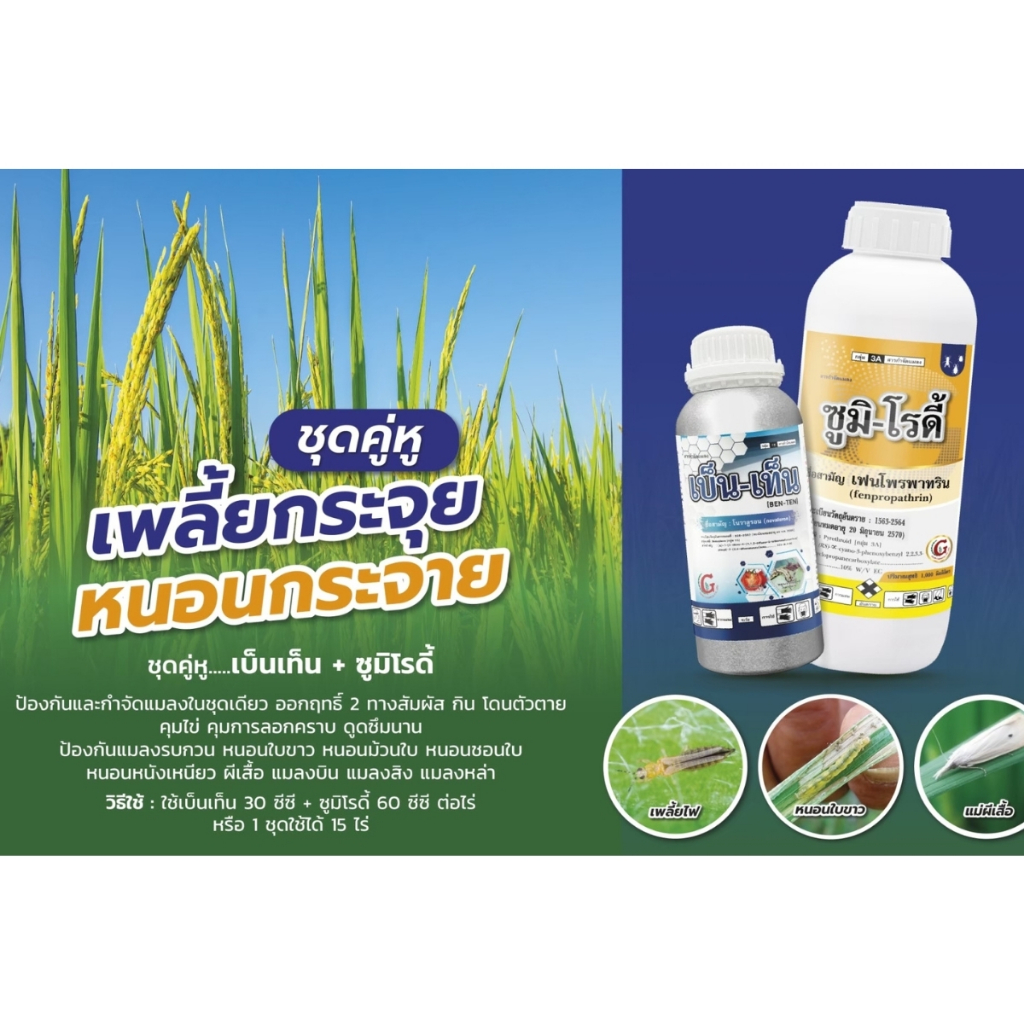 เบ็นเท็น ซูมิ-โรดี้ ป้องกันกำจัดหนอนกระทู้ เพลี้ยไฟศัตรูพืช 1 ชุดต่อพื้นที่ 10 ไร่